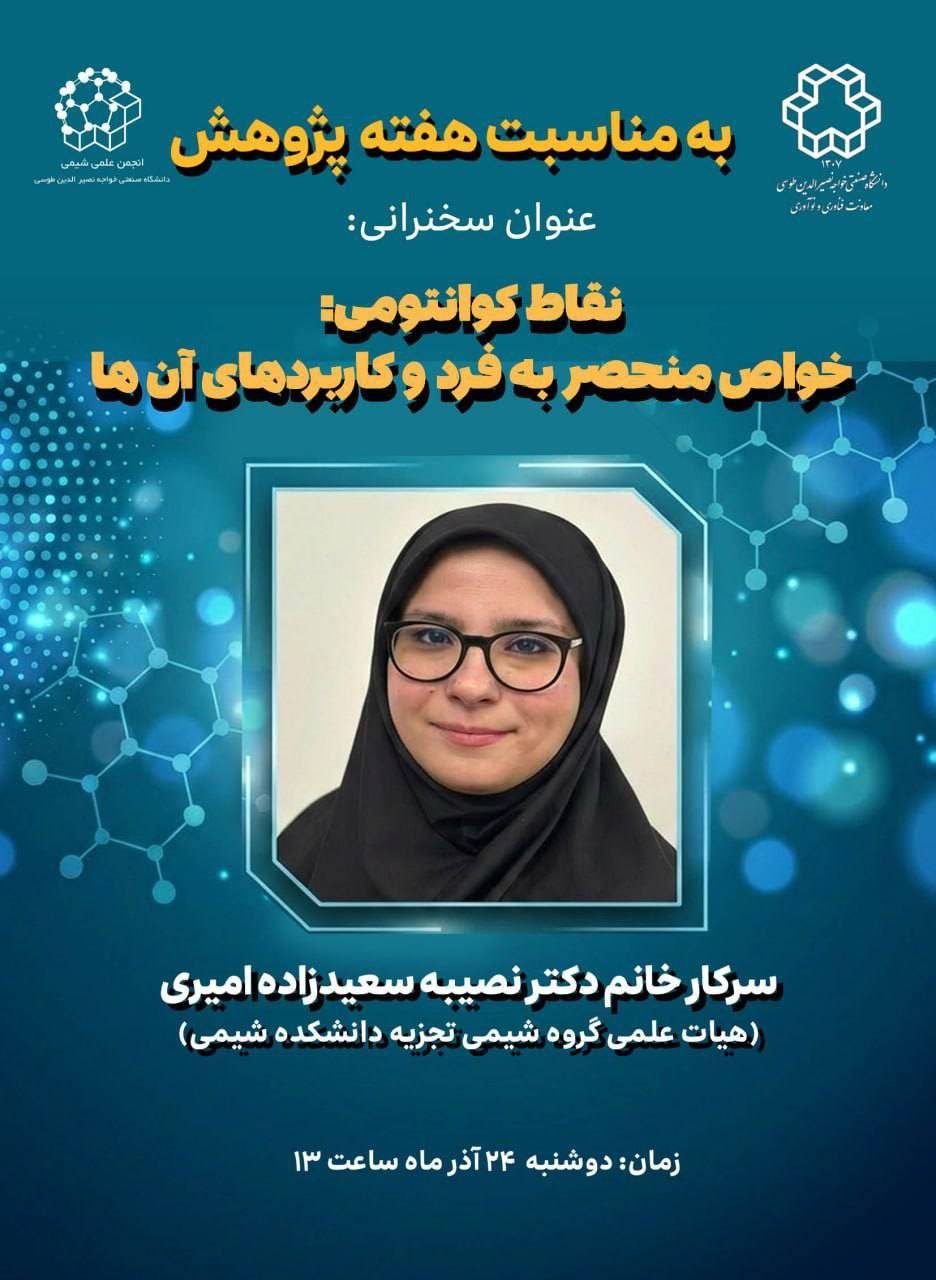 دانشکده شیمی به مناسبت هفته پژوهش برگزار می کند: