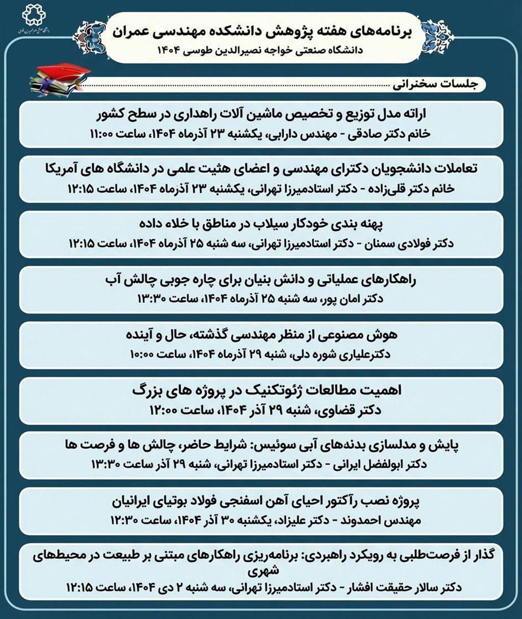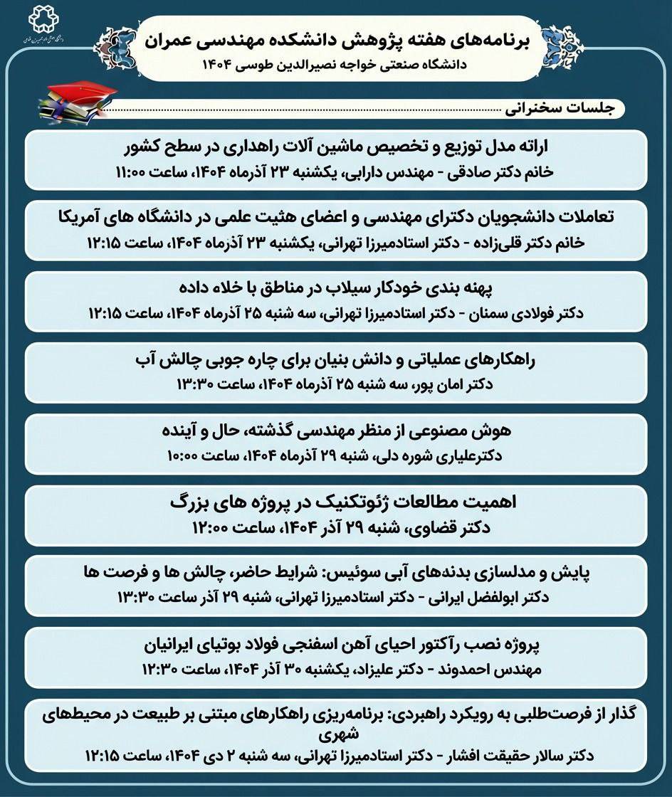 برنامه هفته پژوهش دانشکده مهندسی عمران