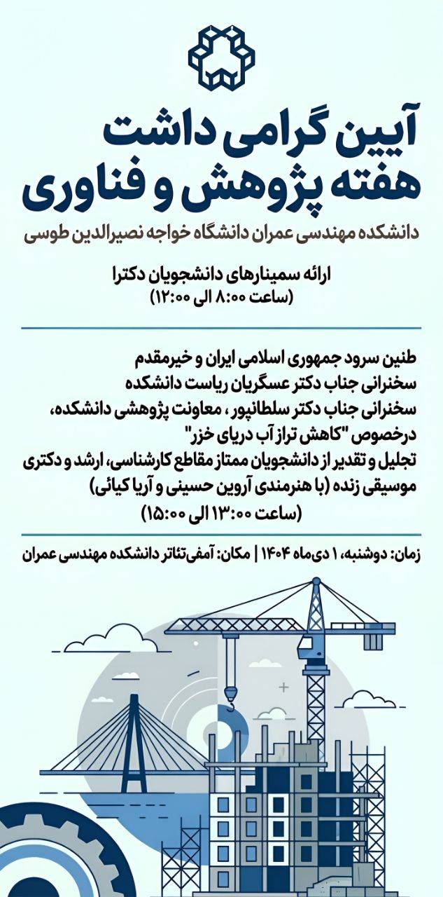 🔹آئین گرامیداشت هفته پژوهش و فناوری (دانشکده مهندسی عمران دانشگاه صنعتی خواجه نصیرالدین طوسی)